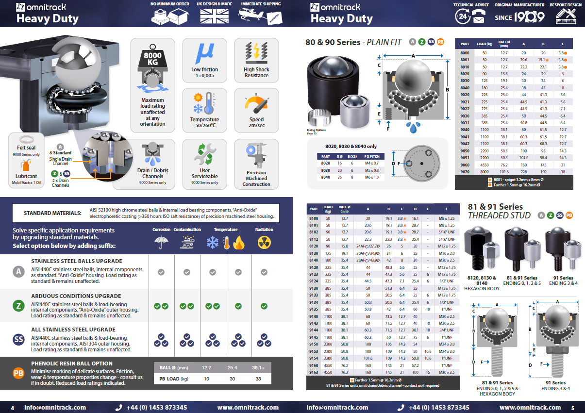 A nagy pontosságú Omnitrack 91-es sorozatú nagy teherbírású golyós görgők a legalacsonyabb súrlódási együtthatót és a legsimább teljesítményt kínálják.