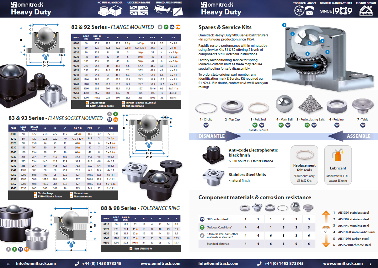 A nagy pontosságú Omnitrack 92-es sorozatú nagy teherbírású golyós görgők a legalacsonyabb súrlódási együtthatót és a legsimább teljesítményt kínálják.