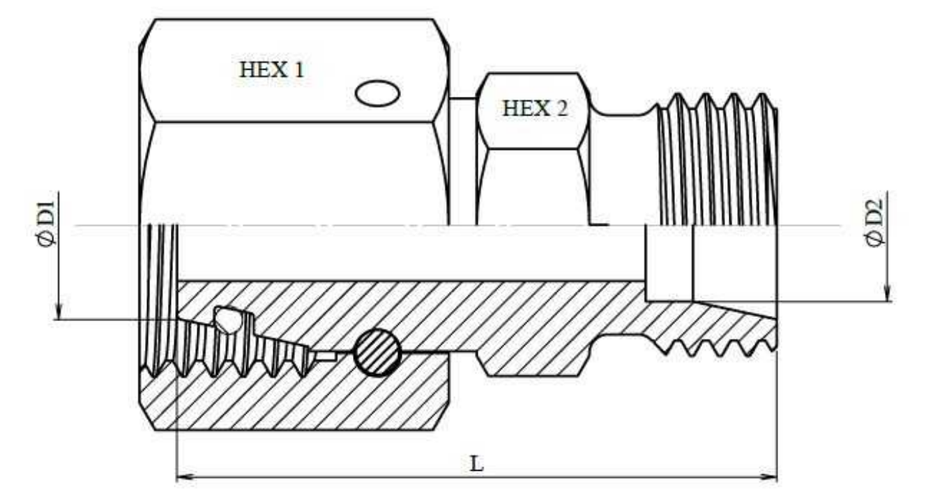 Metrikus-metrikus külső-belső menetes, 24°-os kúpos hidraulika csatlakozó. Anyagában galvanizált acél, de elérhető rozsdamentes változata is.