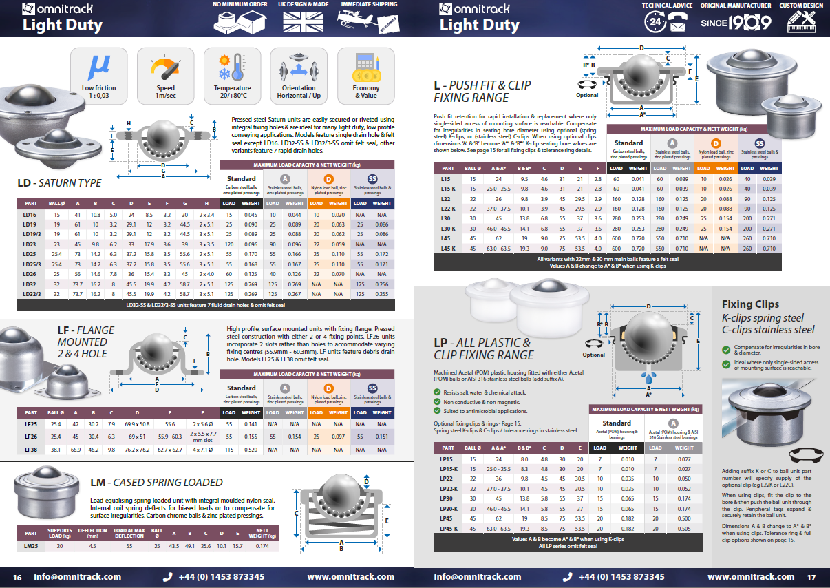 Az L sorozatú golyós egység push fit rögzítésű a gyors beszerelés és csere érdekében, ahol csak egyoldali hozzáférés érhető el a szerelési felülethez. Kompenzálja az illesztőfurat átmérőjének szabálytalanságait az opcionális (rugóacél) ""K-clips"" vagy (rozsdamentes acél) ""C-clips"" használatával.