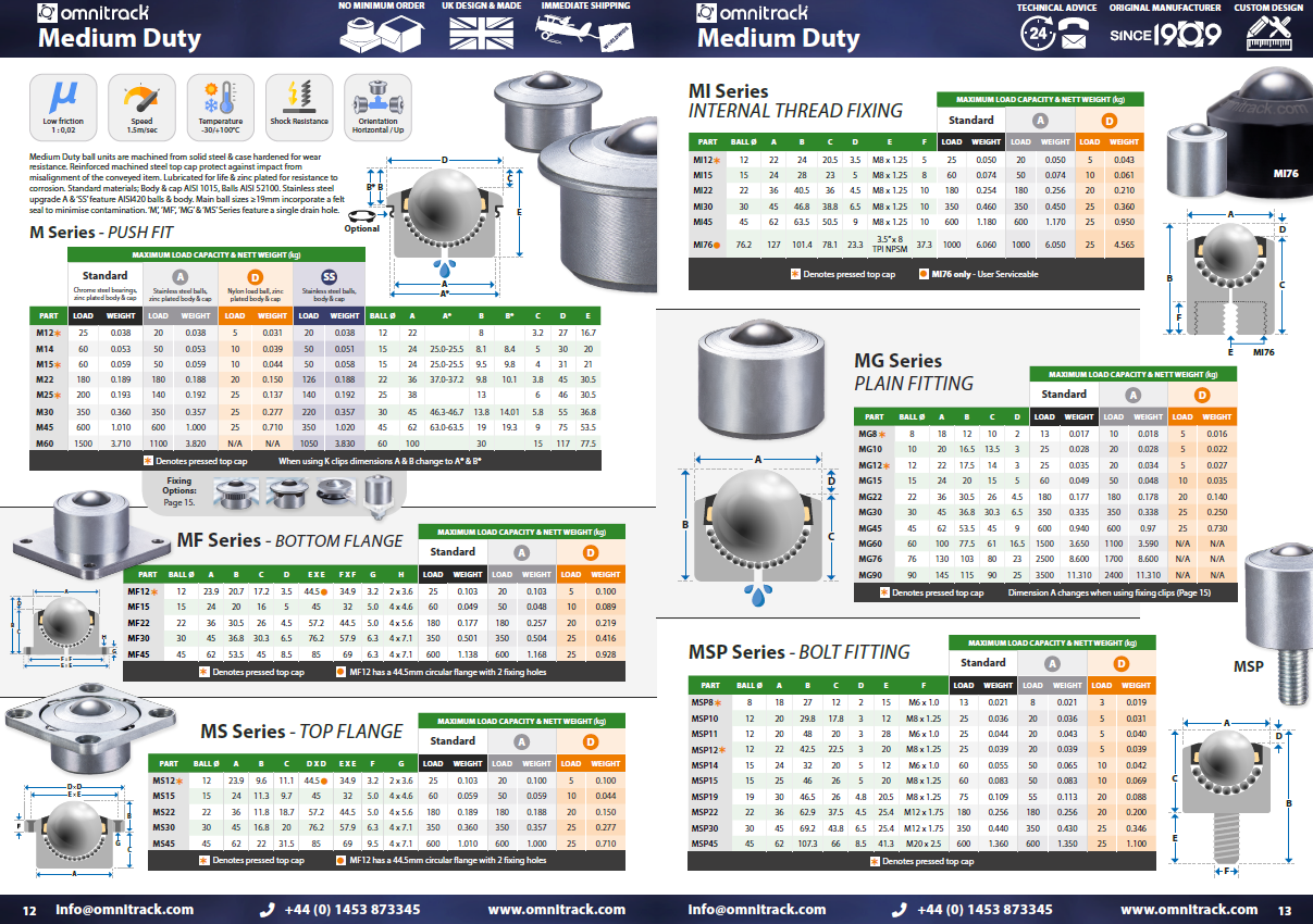 Az MS sorozatú, talpas peremű, közepes teherbírású egységek tömör acélból vannak megmunkálva és kopásállóságuk érdekében edzettek. A megerősített, megmunkált acél felső sapka védelmet nyújt a szállított tárgyak helytelen irányból eredő ütésekkel szemben. Az élettartam érdekében olajozott és a korrózióállóság érdekében horganyzott.
